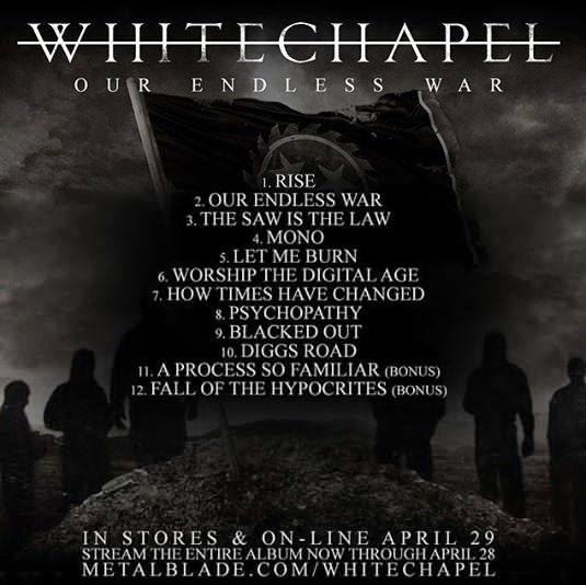 Whitechapel’s upcoming fifth studio album, Our Endless War will be released on Tuesday (April 29), but now fans get a chance to hear the album early. Metal Blade are streaming the album in its entirety for the three days leading up to the release. If you want to check it out go here: