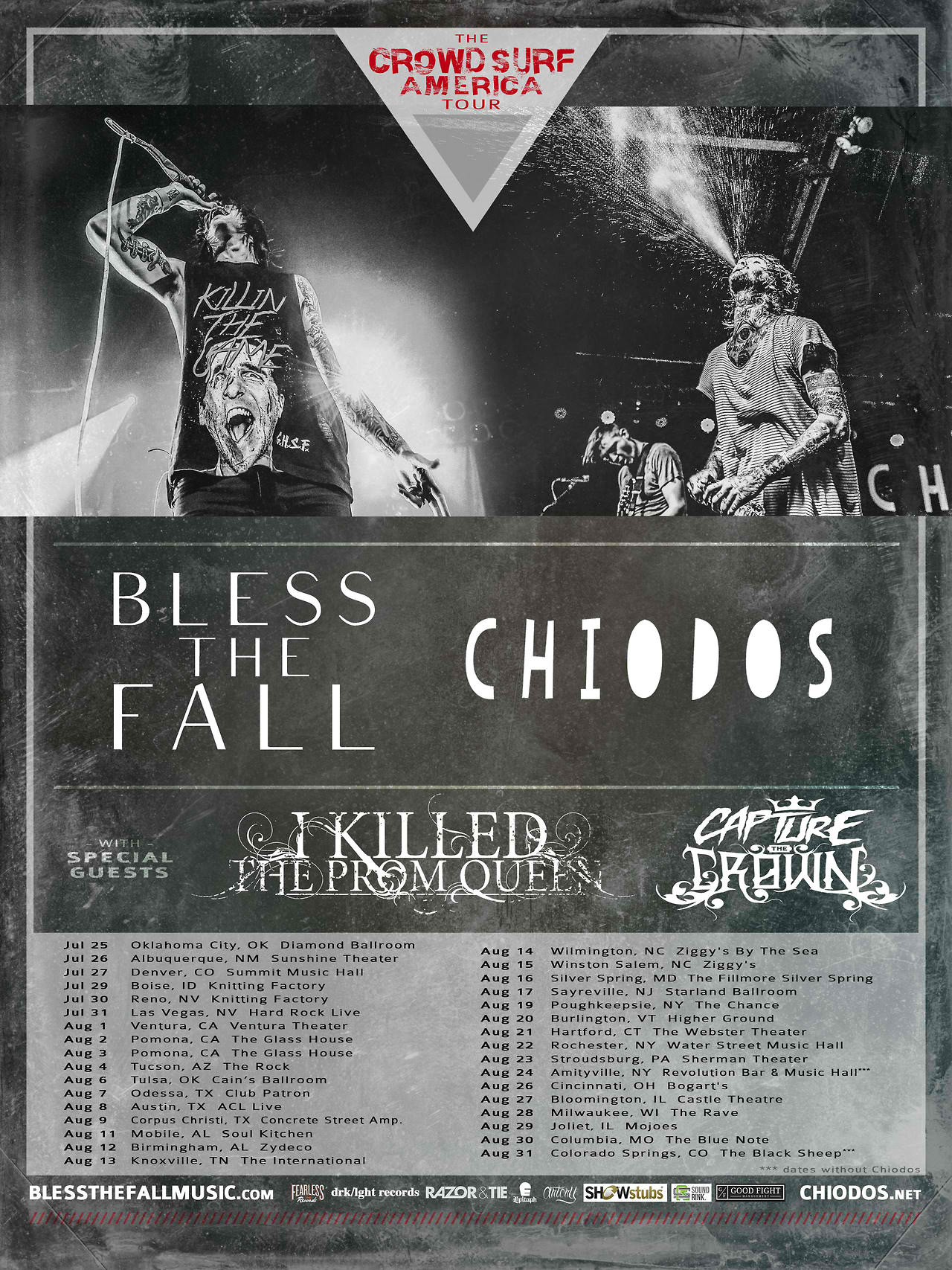 Blessthefall have announced that they will be heading out on a co-headlining tour with Chiodos, this summer. They will also bring along I Killed The Prom Queen and Capture The Crown, as support.