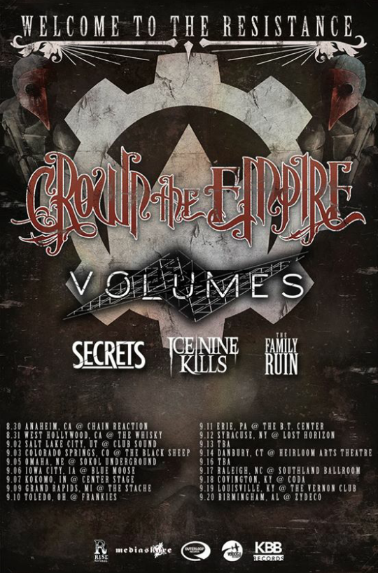 Crown The Empire will be heading out on the road during August and September, in support of their new album, The Resistance: Rise of the Runaways. They will be bringing along Volumes, Secrets, Ice Nine Kills and The Family Ruin, as support.