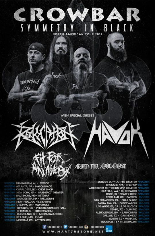 Crowbar have announced a headlining North American Tour. The tour will have 27 dates and will also feature Revocation, Havok, Fit For An Autopsy & Armed For Apocalypse, as support.