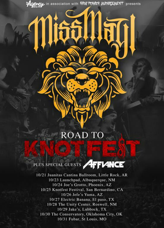 Miss May I will be playing at Knotfest in San Bernardino, CA and have decided to play some extra shows, on the “Road To Knotfest” Tour. The band will also be joined by supporting act, Affiance.