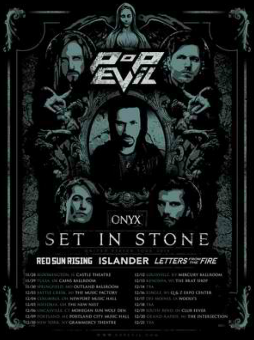 Pop Evil have announced a late 2014 headlining tour. They will also be joined by supporting acts, Red Sun Rising, Islander and Letters From the Fire.