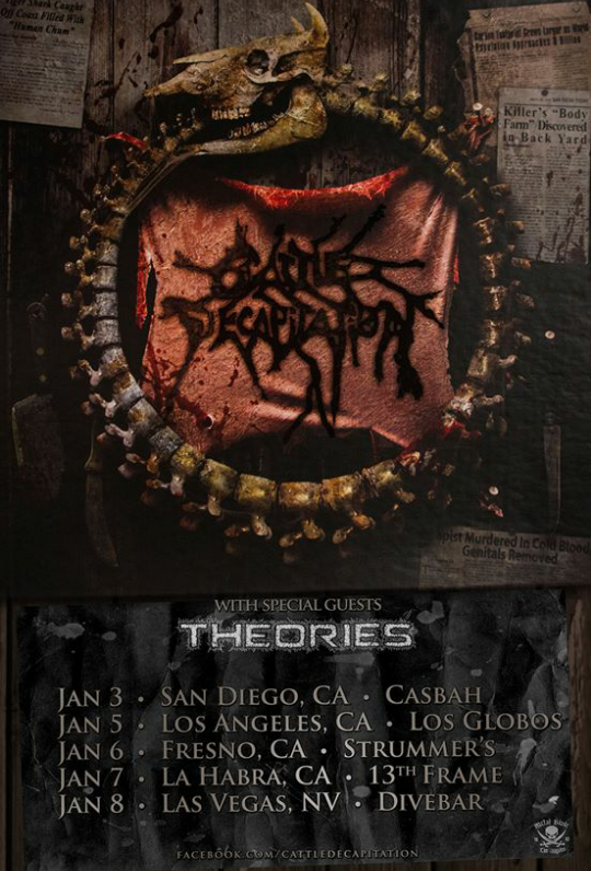 Cattle Decapitation have announced a short 2015 tour. The band will be playing several shows on their way to the studio to record their new album. The opening acts for these shows will be Theories, along with other special guests.
