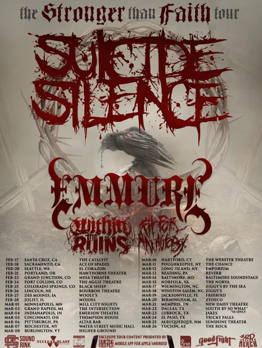 Suicide Silence have announced a 2015 headlining tour. The band will also be joined by Emmure, Within The Ruins and Fit For An Autopsy.