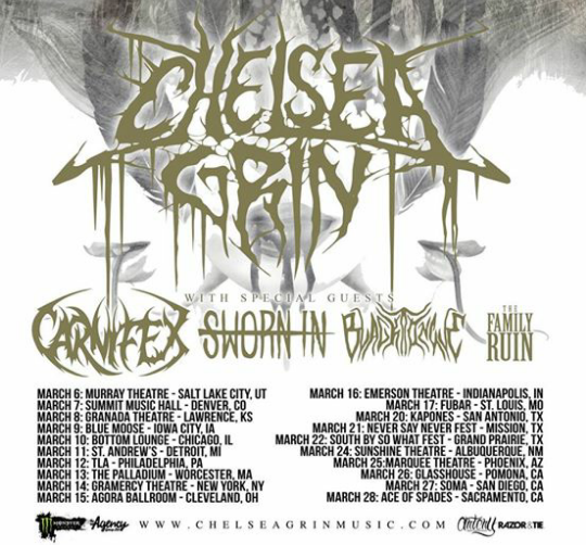 Chelsea Grin have announced a 2015 headlining tour. They will also be joined by supporting acts, Carnifex, Sworn In, Black Tongue, and The Family Ruin.