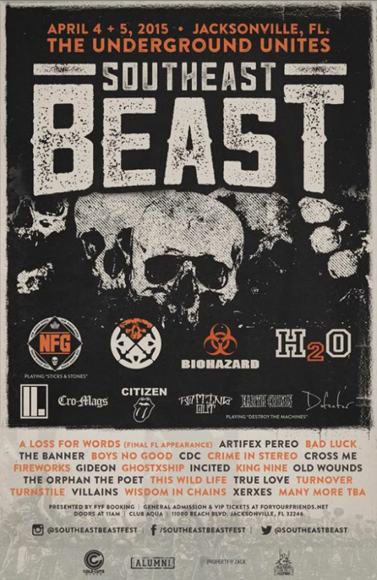 The initial lineup has been revealed for the 2015 Southeast Beast Festival. It will take place April 4 – 5, at Aqua, in Jacksonville, Florida and will include: