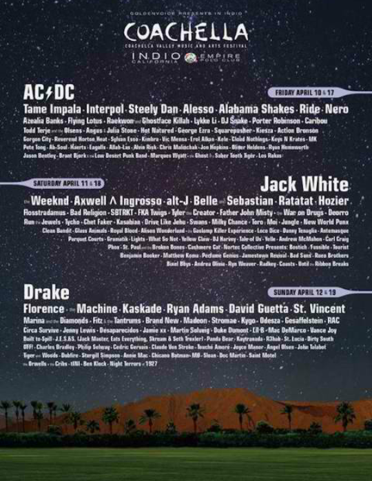 After many rumors and speculations, AC/DC have officially been announced as one of the headliners at the Coachella Valley Music And Arts Festival. The band will perform on April 10 and April 17. These are their first confirmed North American performances on the Rock Or Bust tour. Coachella will take place over two weekends: April 10-12, and April 17-19, in Indio, California.