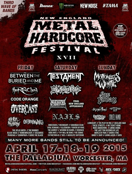 The third batch of bands have been revealed for the New England Metal & Hardcore Festival. The festival will take place at The Palladium in Worcester, MA from April 17th-19th. The newly announced acts include: