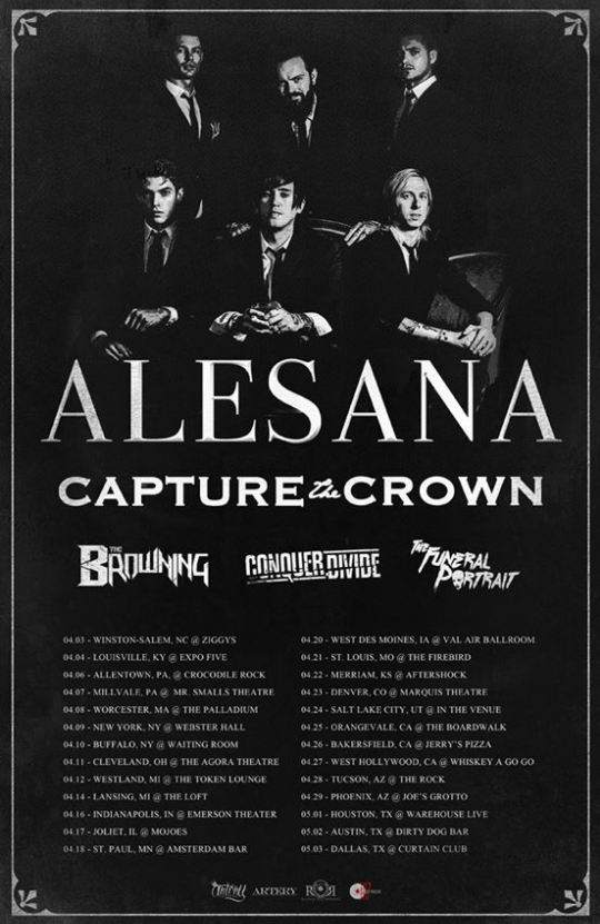 Alesana have announced a headlining U.S. tour. The band will also be joined by supporting acts, Capture The Crown, The Browning, Conquer Divide and The Funeral Portrait.