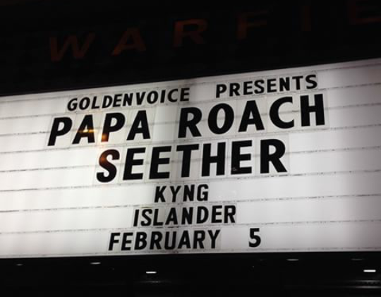 Last night (February 5), I attended the Papa Roach and Seether concert at the Warfield in San Francisco, CA. All in all, it was a great concert and the tour is a good kick off for 2015.