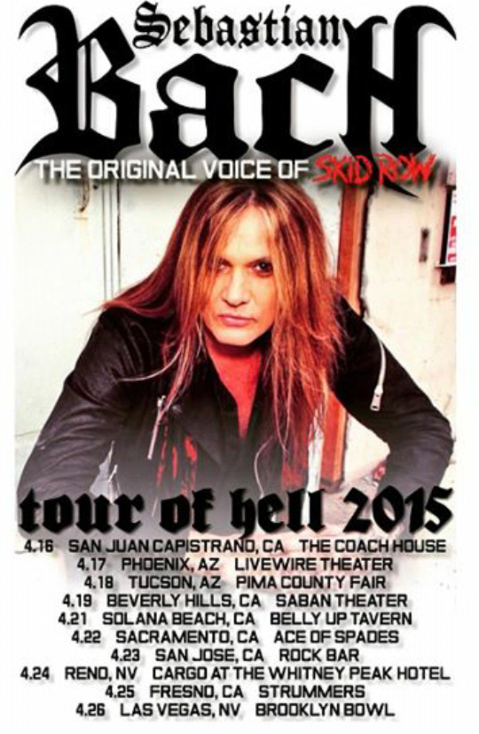 Sebastian Bach has announced some 2015 West Coast dates. The tour will kickoff April 16 in San Juan Capistrano, CA and will wrap up April 26 in Las Vegas, NV.