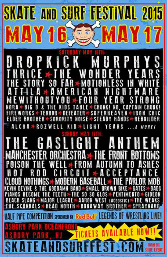 More bands have been added to the 2015 Skate And Surf Festival and the daily lineups have been revealed, as well. The festival will take place at the Asbury Oceanfront in Asbury Park, NJ on May 16 – 17. The newly announced acts include: