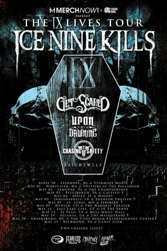 Ice Nine Kills have announced a 2015 headlining tour. The band will also be joined by special guests, Get Scared, Upon This Dawning, Chasing Safety and Brightwell.