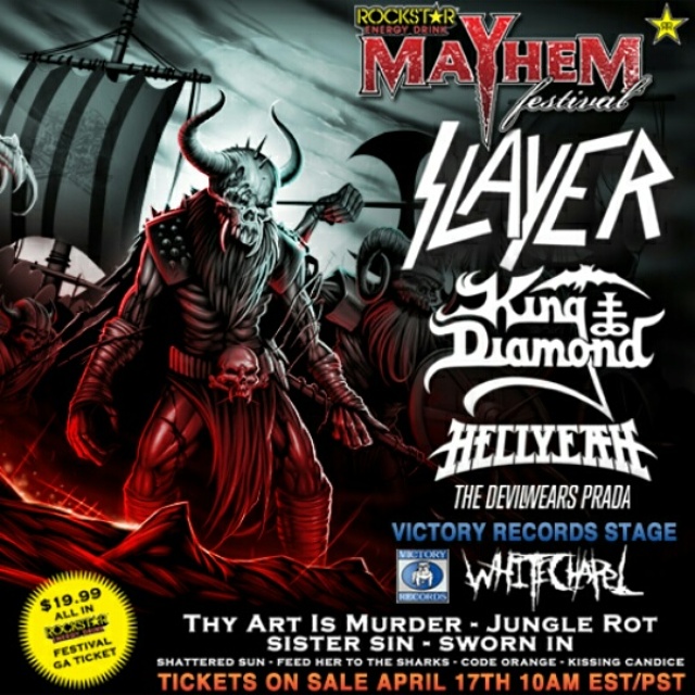Slayer, King Diamond, HELLYEAH, The Devil Wears Prada, Whitechapel, Sister Sin, Thy Art Is Murder, Shattered Sun, Jungle Rot, Sworn In, Code Orange, Kissing Candice and Feed Her To The Sharks