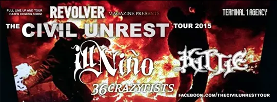 It has been revealed that Ill Niño and Kittie have now been set to co-headline the 2015 “Civil Unrest” tour. The tour will also feature special guests, 36 Crazyfists. Otep will no longer be part of this run. Tour dates are expected to be announced soon.
