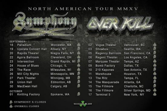 Symphony X and Overkill have announced a North American co-headlining tour. The tour will kickoff in September and will have both bands take turns closing out the night.