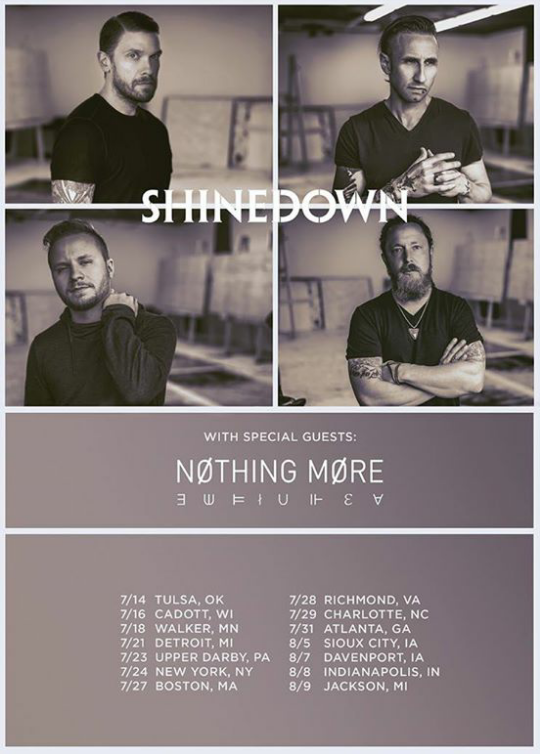 Shinedown have announced a summer headlining tour. The band will also be joined by special guests, Nothing More, on a majority of the dates.