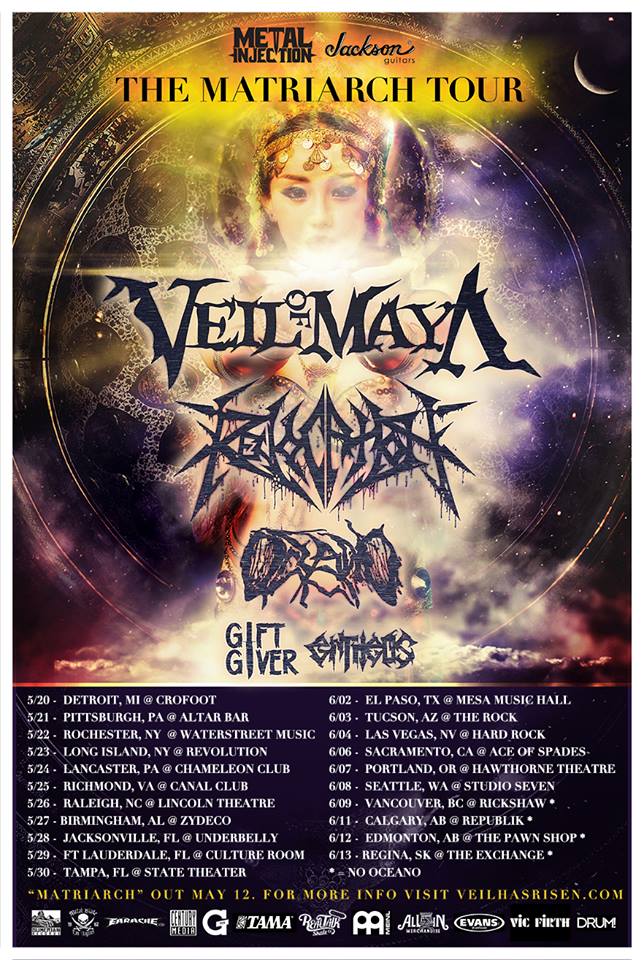 Veil Of Maya have announced a 2015 tour, that they are calling The Matriarch Tour. The band will also be joined by special guests Revocation, Oceano, Gift Giver and Entheos.