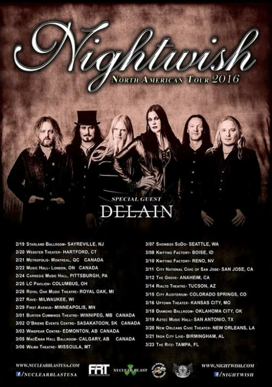 Nightwish will be touring North America next February/March. The band will also be bringing along Delain, as support.