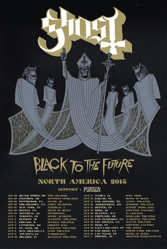 Ghost have announced a 2015 North American tour called the “Black To The Future” tour. The band will also be joined by special guests Purson.