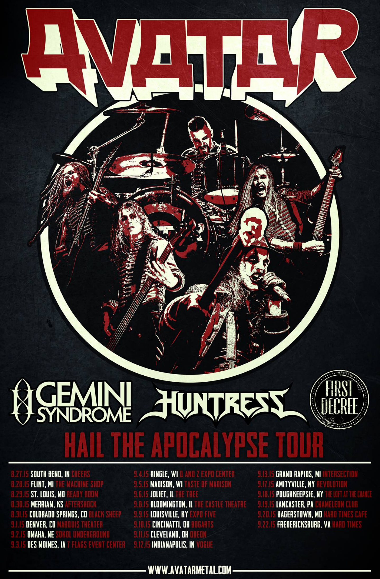 Avatar have announced a North American headlining tour. The band will also be joined by special guests Gemini Syndrome, Huntress and First Decree.