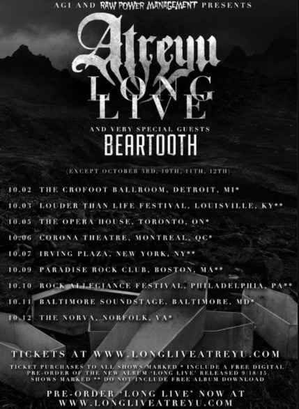 Beartooth have been added to select dates of Atreyu’s fall tour. Check out the dates below to see when they’re performing.