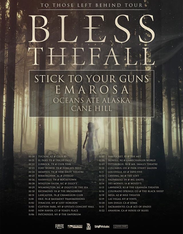 Blessthefall have announced a fall headlining tour. The band will also be joined by special guests Stick To Your Guns, Emarosa, Oceans Ate Alaska and Cane Hill.