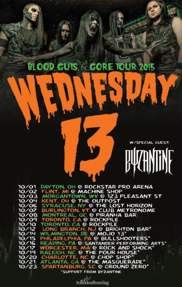 Wednesday 13 has announced a fall 2015 tour. He will also be joined by special guests Byzantine on select dates.