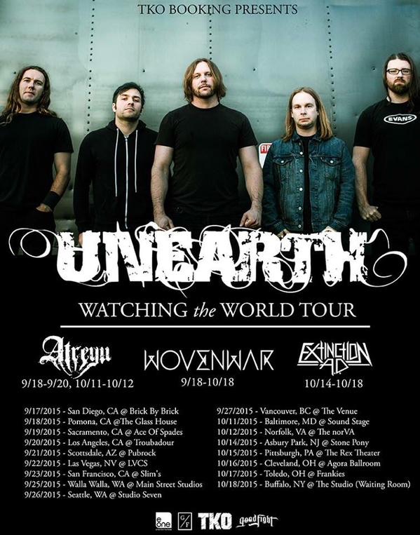 Unearth have announced some fall dates surrounding their previously announced shows with Atreyu. Wovenwar and Extinction A.D. (select dates) will serve as support.