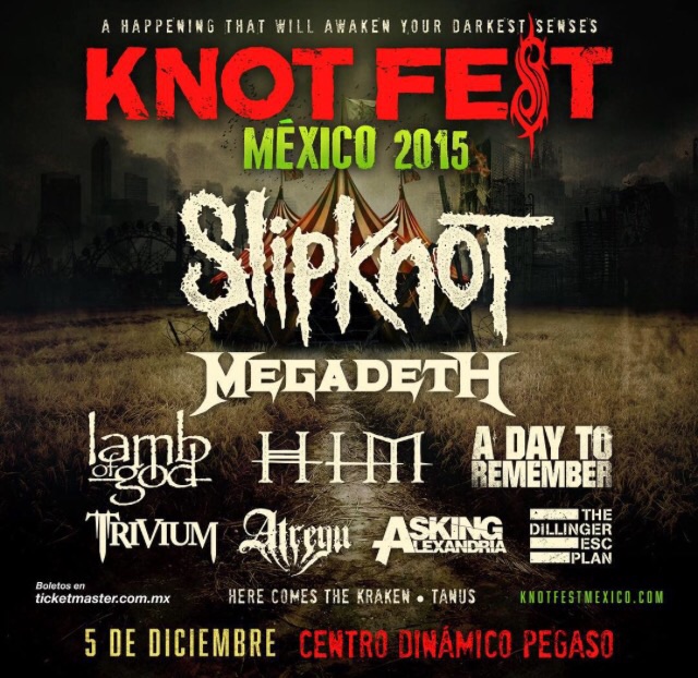 The initial lineup has been announced for Knotfest Mexico. The event wiall take place December 05 at the Foro Pegaso in Toluca, Mexico, and will include: