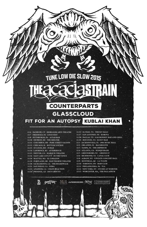 The Acacia Strain have announced a headlining North American tour. The band will also be joined by special guests Counterparts, Glass Cloud, Fit For An Autopsy and Kublai Khan.