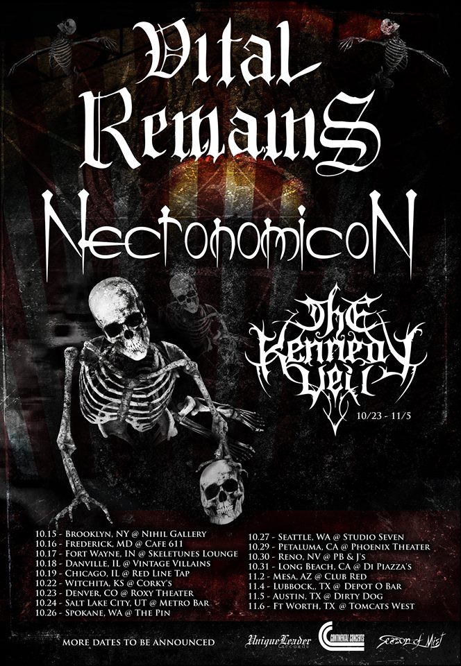 Vital Remains have announced U.S. headlining tour. The band will also be joined by special guests Necronomicon and The Kennedy Veil (select dates).