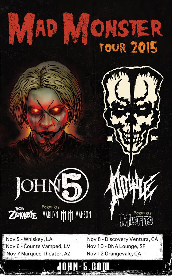 John 5 (Rob Zombie, ex-Marilyn Manson) has announced a fall solo tour. Doyle (ex-Misfits) will also perform on select dates.