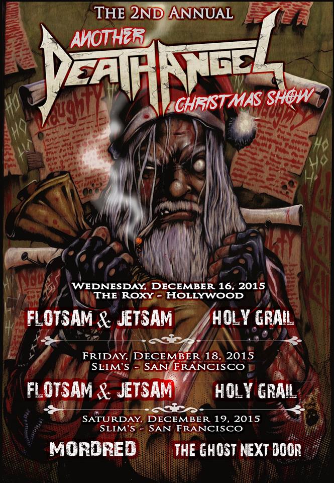 Death Angel have announced a few December Californian shows. Supporting acts for these Christmas shows include: Flotsam and Jetsam, Holy Grail, Mordred, and The Ghost Next Door.