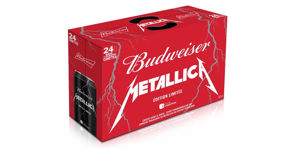 According to journaldequebec.com, Metallica and Labatt Breweries have teamed up to create limited edition Metallica Budweiser beer. The beverage was made to commemorate the band’s special shows in Quebec, QC, and will be available in the city on September 28. 91,000 cans are expected to be available.
