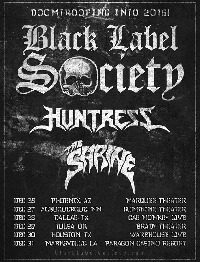 Black Label Society have announced some December headlining dates. The band will also be joined by special guests Huntress and The Shrine.