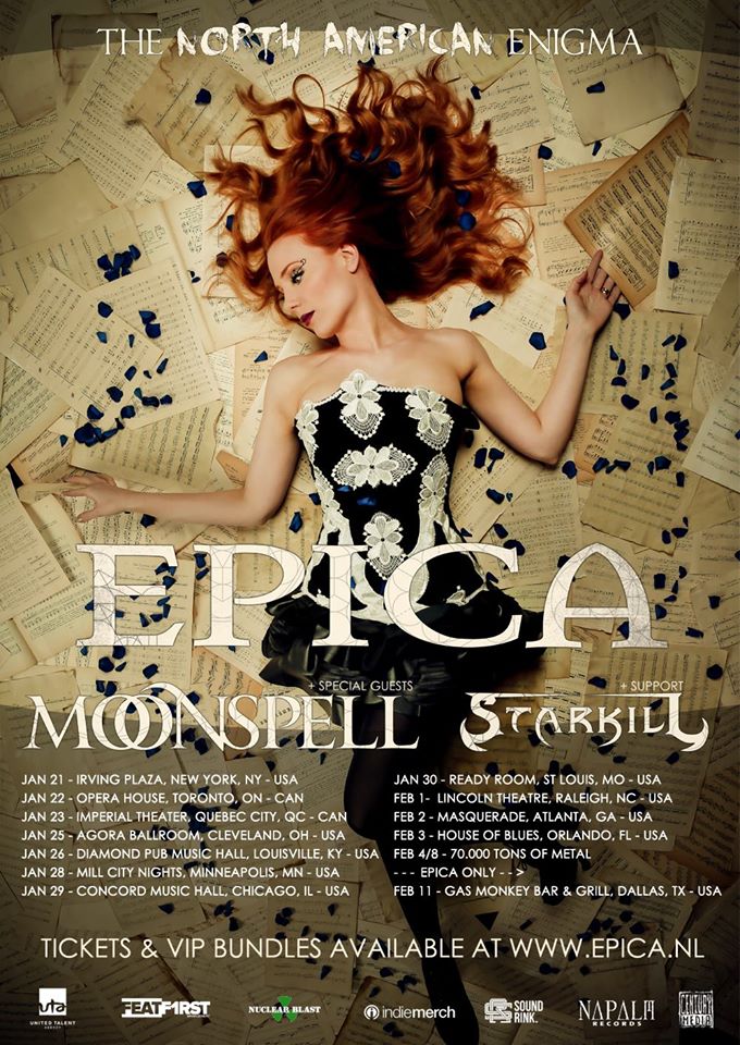 Epica have announced a 2016 headlining tour. The band will also be joined by special guests Moonspell and Starkill.