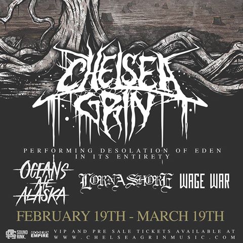 Chelsea Grin have announced a 2016 headlining tour. On this run, the band will be performing “Desolation Of Eden” in its entirety, and will be joined by special guests Oceans Ate Alaska, Lorna Shore, and Wage War.