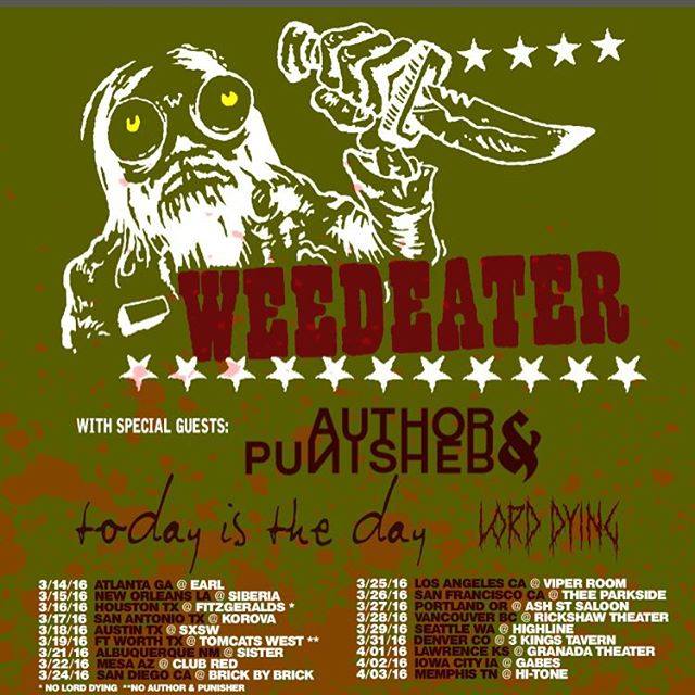 Weedeater have announced a 2016 headlining tour. The band will also be joined by special guests Author & Punisher, Today Is The Day, and Lord Dying.