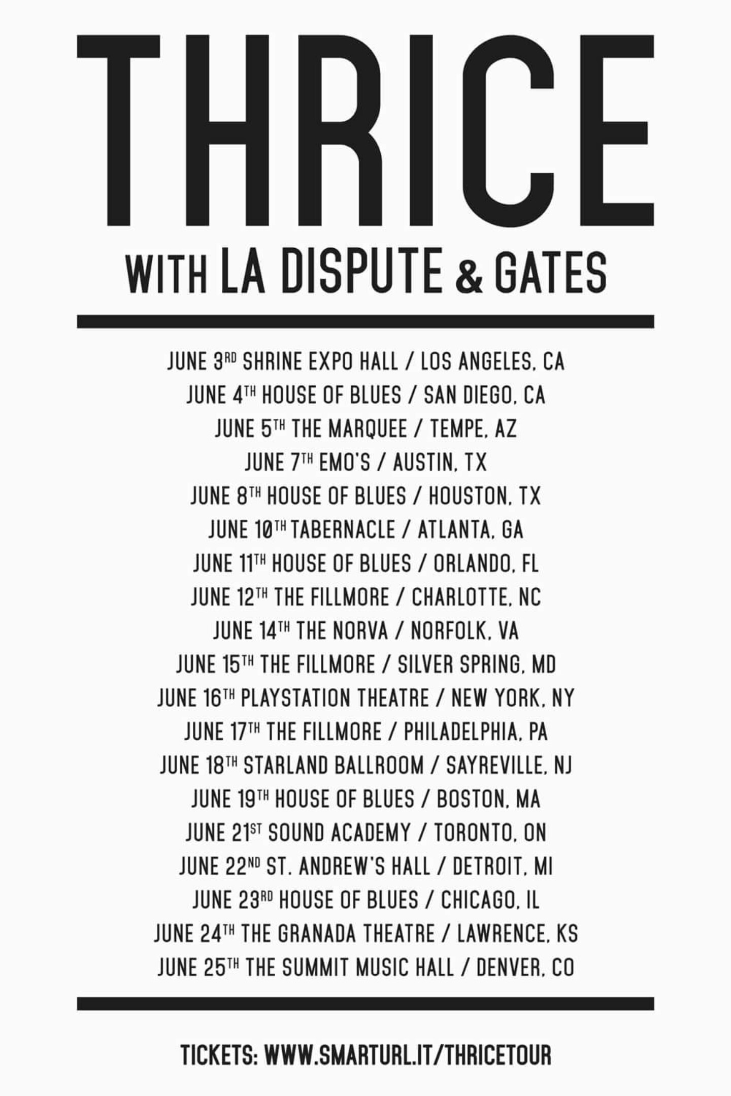 Thrice have been working on a new album and have announced their first tour in four years. La Dispute, and Gates will serve as support for the trek.