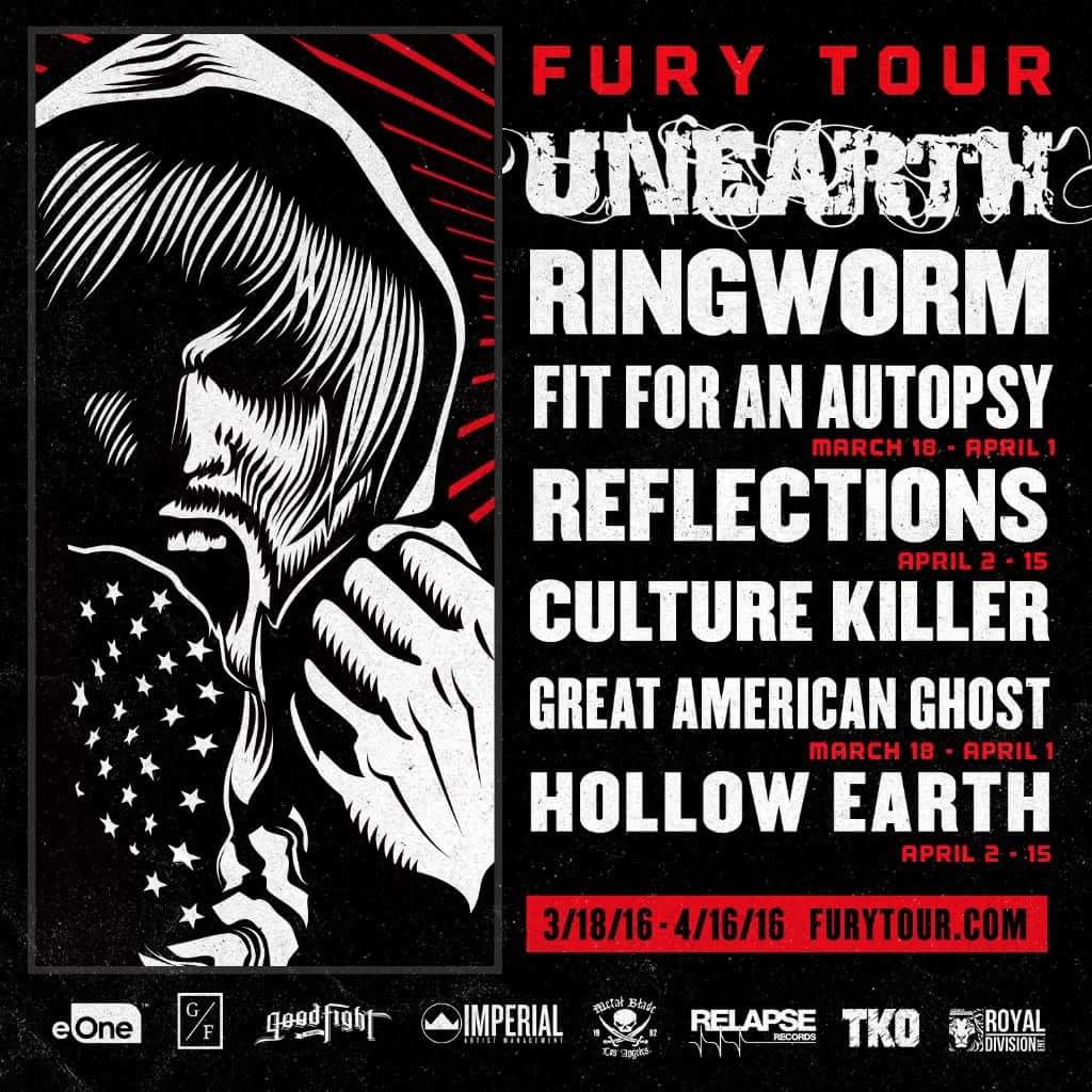 Unearth have announced a 2016 tour with Ringworm, and Culture Killer. Fit For An Autopsy, Reflections, Great American Ghost, and Hollow Earth will also perform on select dates.
