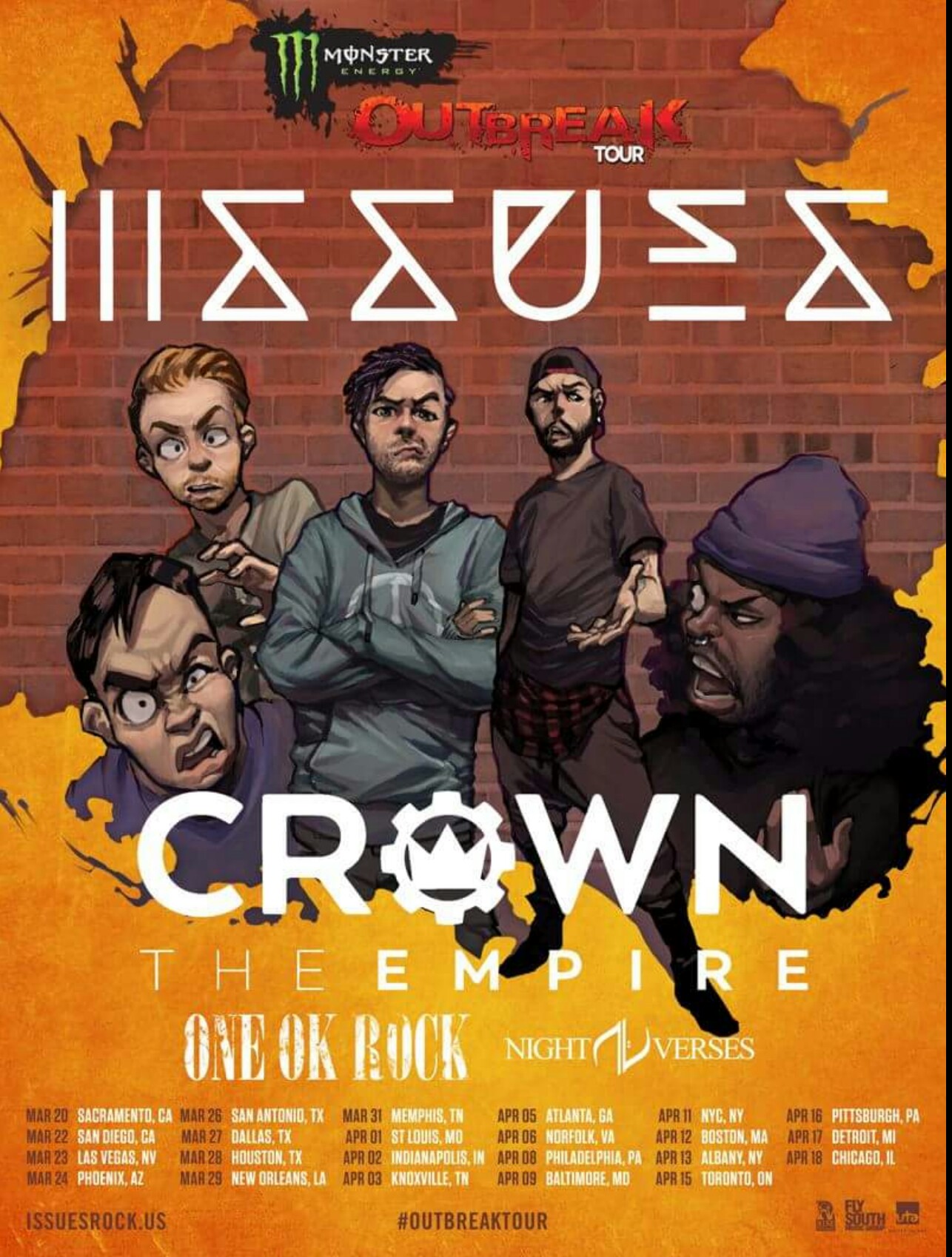 Issues will be headlining the 2016 Monster Energy Outbreak Tour. The rest of the lineup includes: Crown The Empire, One Ok Rock, and Night Verses.
