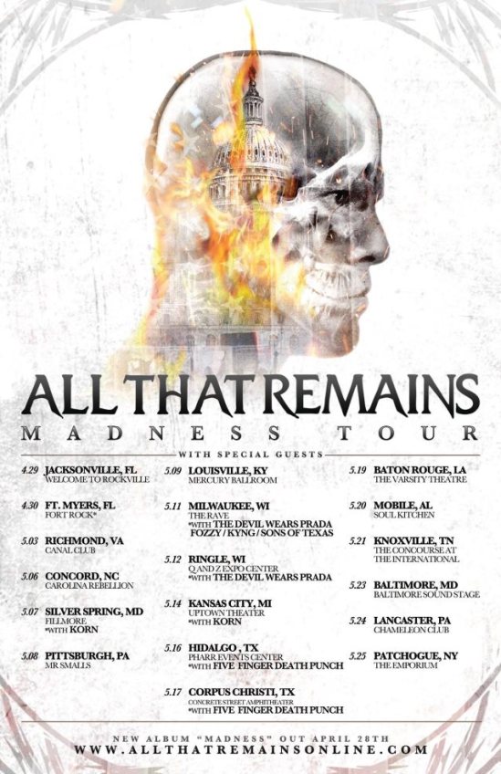 All That Remains have announced a spring U.S. tour. The band will be touring in support of their new album “Madness,” which will be released on April 28.