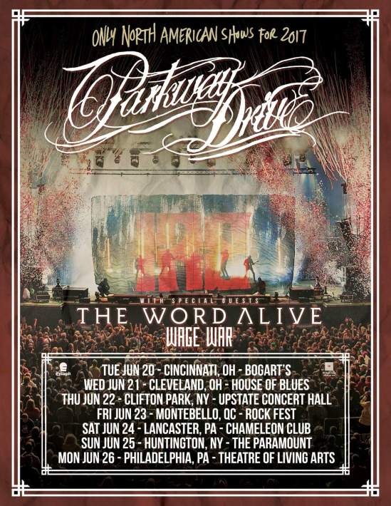 Parkway Drive have announced some headlining North American dates. The Word Alive and Wage War will serve as support.