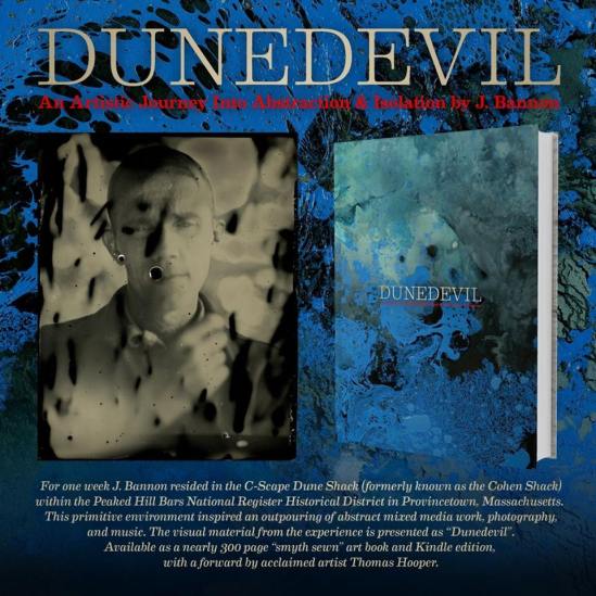 Dunedevil emerged from Bannon’s weeklong residence in the C-Scape Dune Shack (formerly known as the Cohen Shack) within the Peaked Hill Bars National Register Historical District in Provincetown, Massachusetts. The area’s jagged seacoast, rolling sand dunes and primitive desolation spurred an outpouring of mixed media work, photography and music.