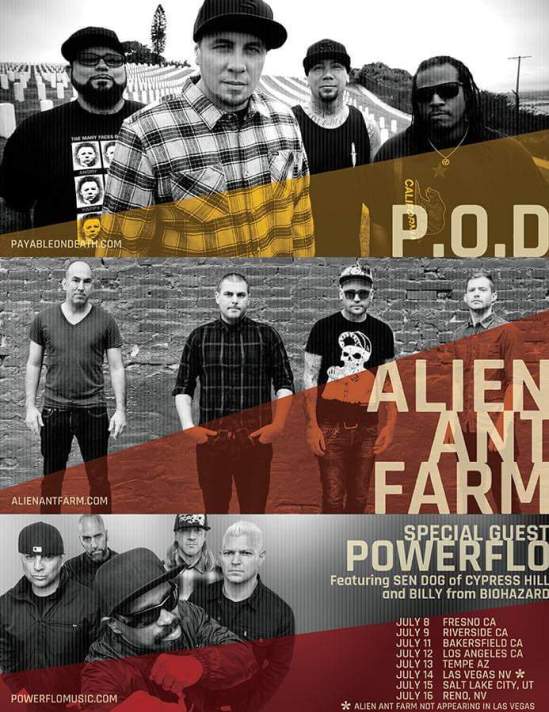 P.O.D., Alien Ant Farm, and Powerflo (Cypress Hill, ex-Fear Factory, etc.) have announced some July West Coast shows. Some more dates are being planned for August as well.
