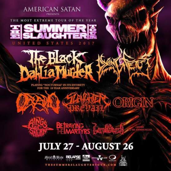 The initial lineup has been revealed for this year’s Summer Slaughter Tour. Bands set for the trek include: The Black Dahlia Murder (performing “Nocturnal” in full for its 10th anniversary), Dying Fetus, Oceano, Slaughter To Prevail, Origin, Rings Of Saturn, Betraying The Martyrs, and Lorna Shore. Dates and another special guest are expected to be announced on Friday (June 9).