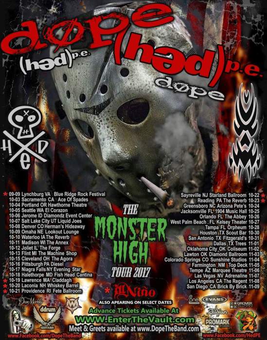 Dope and (hed)p.e. have announced a fall tour together. Ill Niño will also appear on select dates.