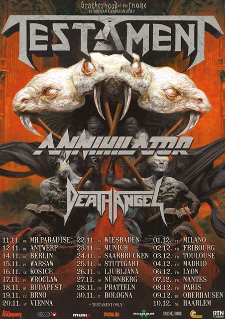 Testament have announced a European tour with Annihilator and Death Angel. Check out the dates out for that below.