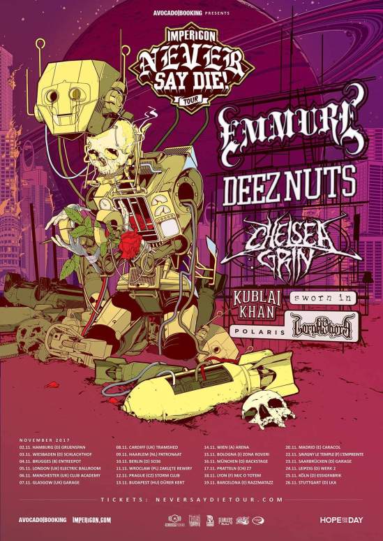 Emmure will be headlining the 2017 Never Say Die! Tour with Deez Nuts, Chelsea Grin, Kublai Khan, Sworn In, Polaris, and Lorna Shore. Check out the dates below.